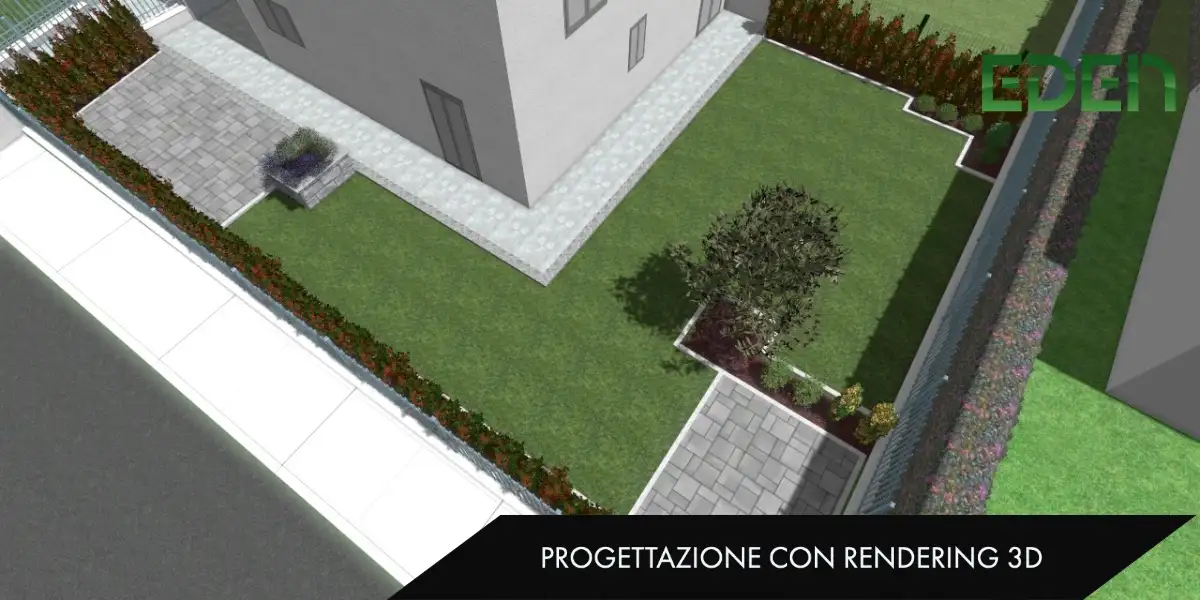 Progettazione con rendering 3D di giardino in villetta